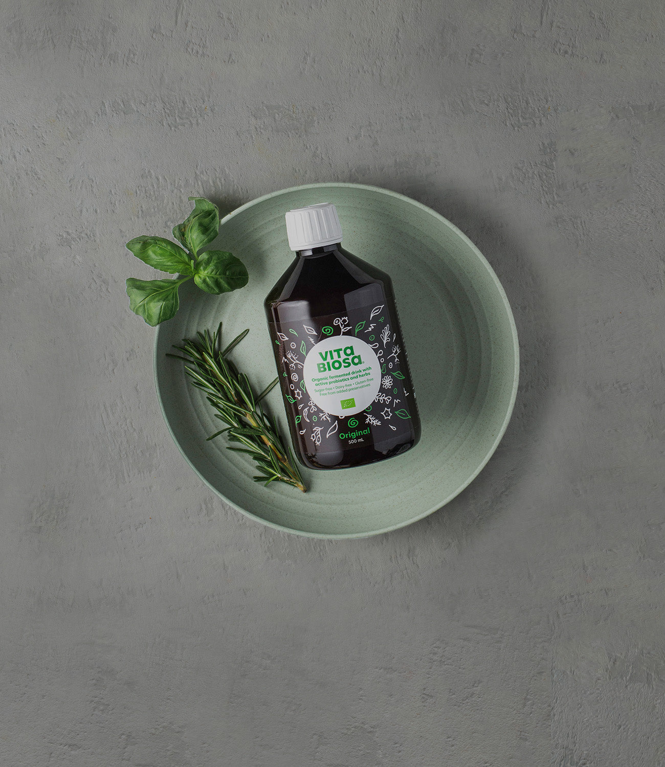Vita Biosa is an organic tonic fermented with cultures of bifido and lactic acid bacteria and extracts from 19 herbs. Vita Biosa is a vegan and organic product that is unpasteurized and free of milk, sugar, and gluten.