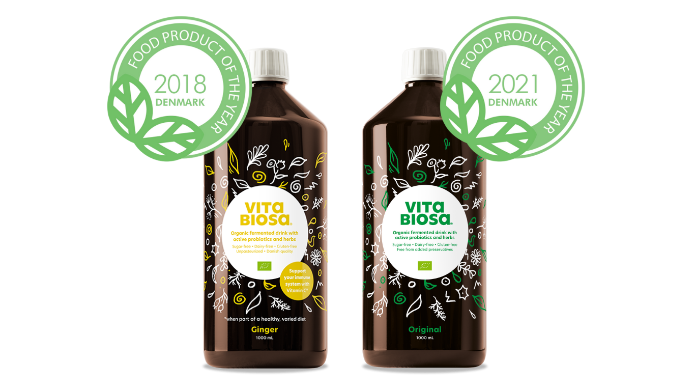 Vita Biosa has proudly been honored twice with the prestigious 'Food Product of the Year' award from the Danish health food industry - first with Vita Biosa Ginger in 2018, and then with Vita Biosa Original in 2021.